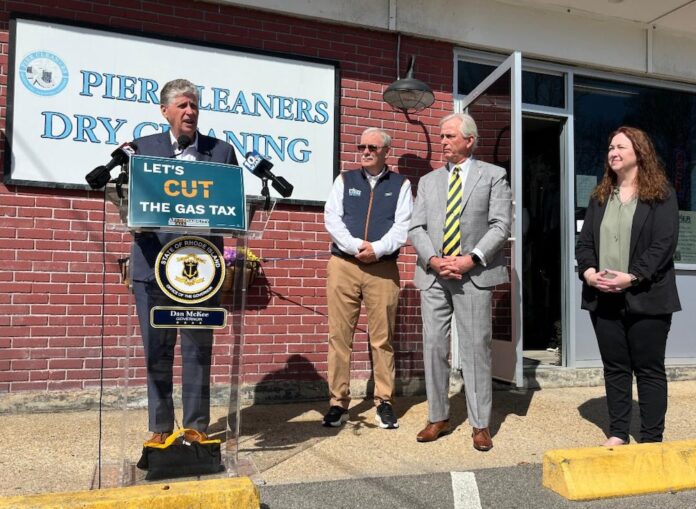 WAKEFIELD, RI.- El gobernador Dan McKee presentó a la comunidad empresarial su propuesta para reducir el impuesto a la gasolina, como parte de su programa «Asequibilidad para Todos», durante una conferencia de prensa celebrada en la empresa Pier Cleaners de Wakefield.