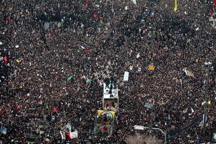 Los cantos de dolor eran muy profundos y continuamente se comparó la muerte de Soleimaní en un bombardeo estadounidense en Bagdad con la tragedia vivida por el tercer imán chií Husein, fallecido en la batalla de Kerbala (actual Irak) en el año 680 de nuestra era.