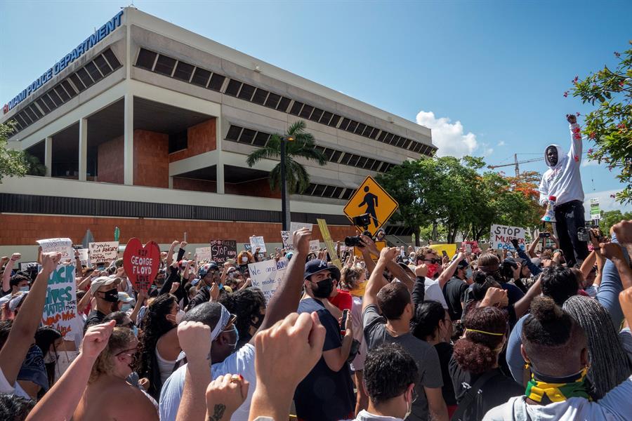 El centro de Miami (Florida) fue testigo de una protesta de dos millares de personas, como parte de una convocatoria de organizaciones sociales.