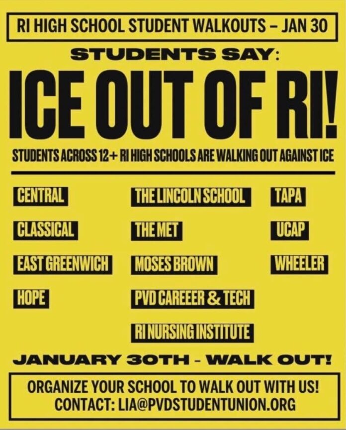 Desde principios de esta semana ha circulado un panfleto donde se hace un llamado a estudiantes de secundaria a marchar junto a las uniones de estudiantes de Providence en repudio a las políticas federales de inmigración y las acciones violentas del ICE.
